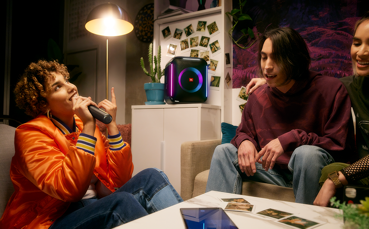 Pokaz świetlny PartyBox firmy JBL sprawi, że Twoja impreza zabłyśnie dzięki lampom pierścieniowym i klubowym oraz rockowym efektom stroboskopowym, które synchronizują się z rytmem Twojej muzyki, zapewniając niesamowicie wciągające wrażenia audiowizualne.