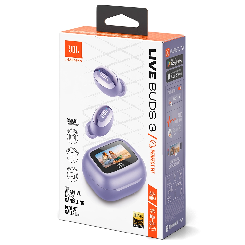 Za pomocą ekranu dotykowego 1,45 cala na etui Smart Charging Case™ możesz dostosować każdy aspekt swoich słuchawek JBL Live Buds 3. Wyświetlacz zapewnia pełną kontrolę nad dźwiękiem na dowolnym urządzeniu – laptopie, telewizorze, smartfonie lub tablecie – bez konieczności uzyskiwania dostępu do aplikacji JBL na smartfonie.