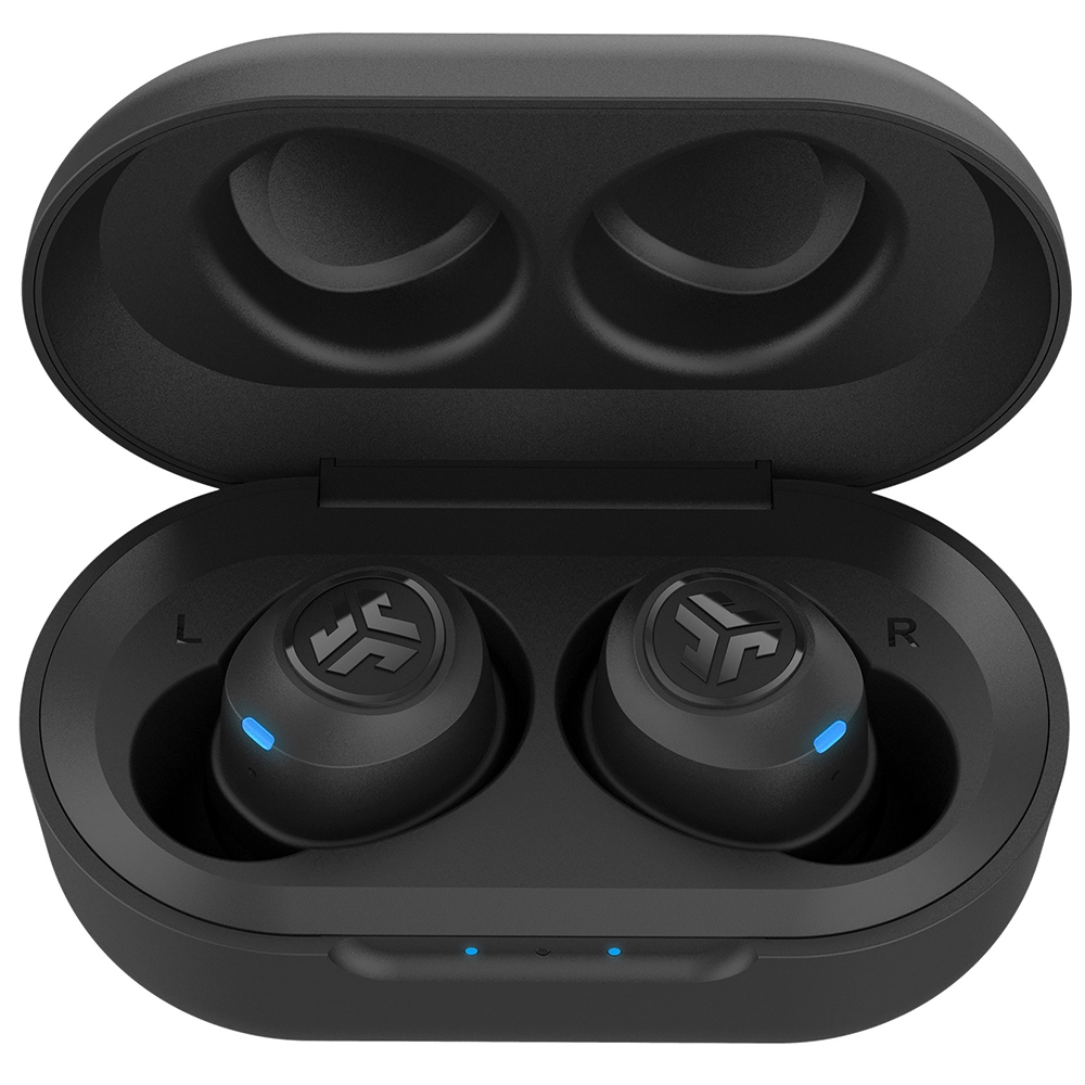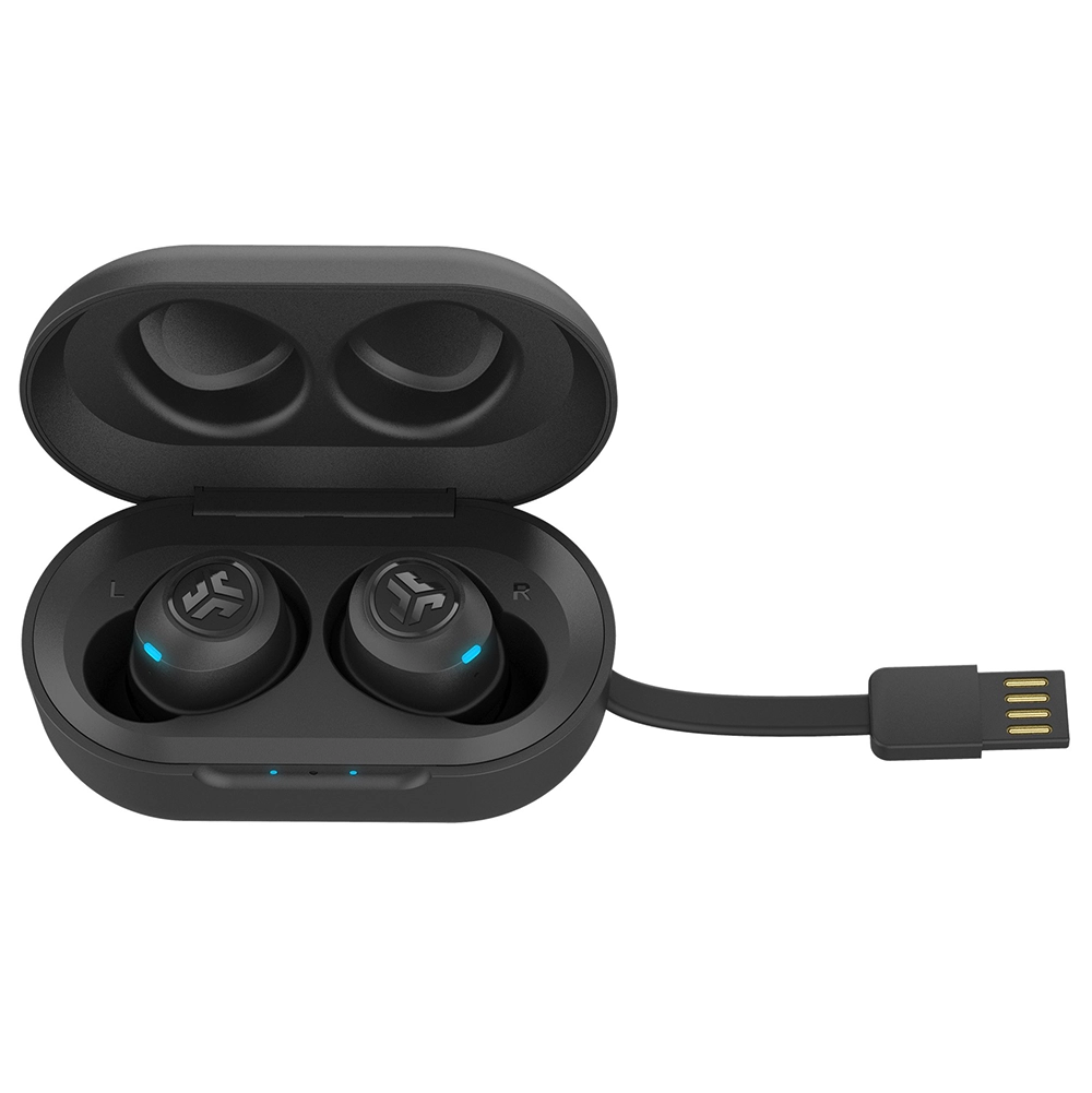 Słuchawki JBuds Air automatycznie włączają się i łączą ze sobą po wyjęciu z etui do ładowania, dzięki czemu możesz bez przeszkód kontynuować pracę w dowolnym miejscu.